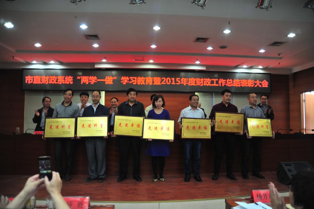 2016年5月17日,市财政局召开两学一做学习教育暨2015年度财政工作总结表彰大会,对2015年度市直财政系统涌现出的先进集体及在双提升活动中取得优异成绩的单位(科室)和个人进行了通报表彰。